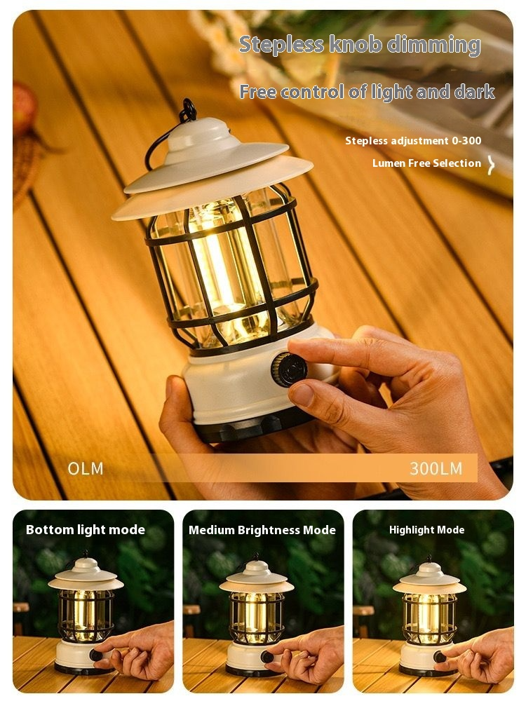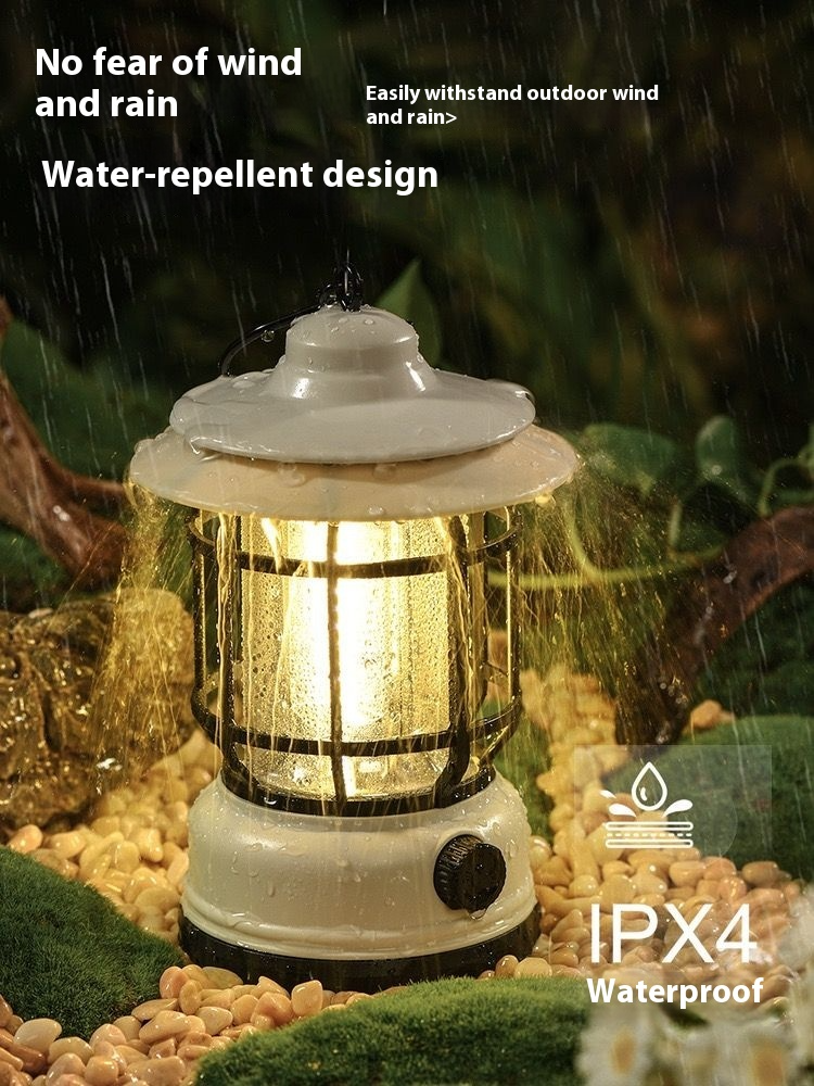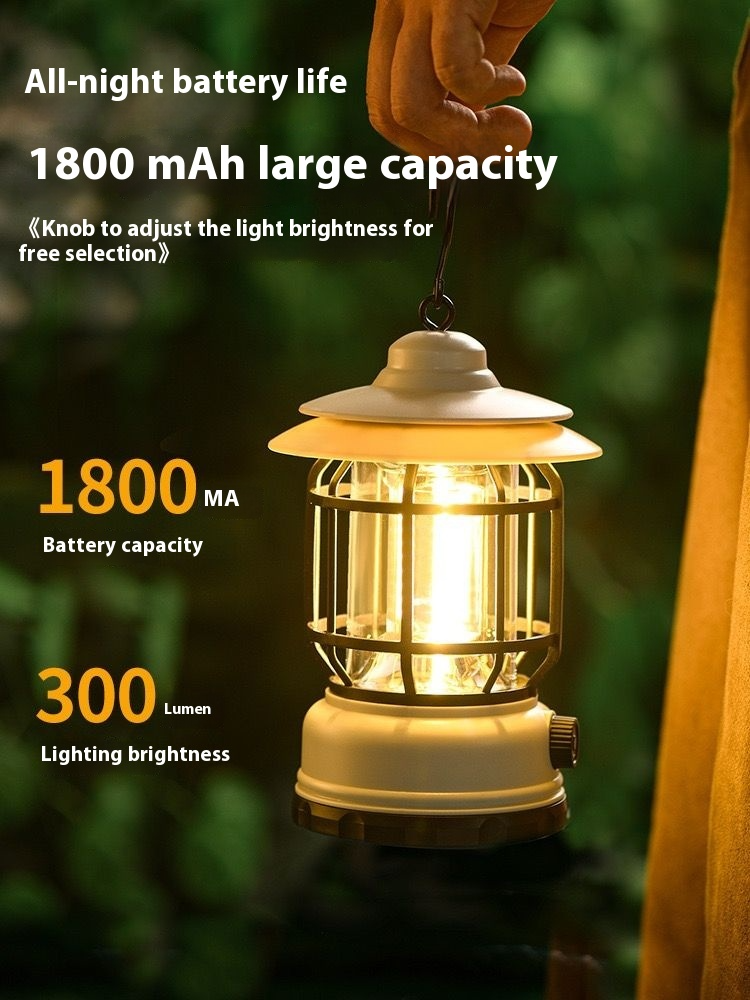 With stepless knob dimming, you can freely switch between 0 - 300 lumens, controlling both the atmosphere and brightness. It has a large 1800 - mAh capacity, ensuring continuous power throughout the night. The Type - C universal interface makes charging convenient. With an IPX4 waterproof rating, it can withstand wind and rain without fear. Its retro appearance is eye - catching, available in colors like ivory white and obsidian black. Whether for creating a romantic atmosphere or providing practical lighting, it's the perfect camping partner. Take it with you and start a perfect outdoor journey!